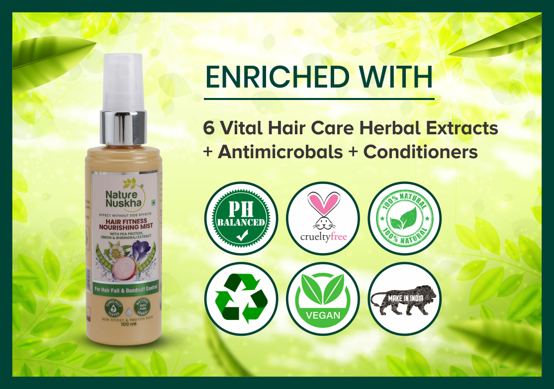 - SUPPORTS HAIR FALL CONTROL, NON-STICKY, TONIC WITH ONION AND BHRINGRAJ EXTRACTS - Enriched with natural extracts like Onion, Bhringraj, and Peas Protein etc. Nature Nuskha hair thickening spray Live on Mist helps in reducing hair fall by strengthening hair roots and reviving weak hair follicles.
