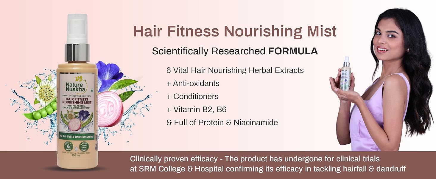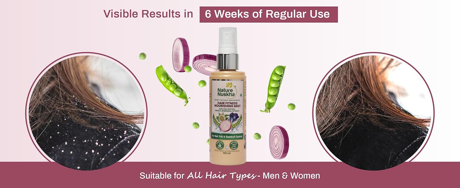 Nature Nuskha Hair Nourishing Mist Anti-hair fall & dandruff control spray with Onion, Bhringraj and Niacin-Live-On, Non Sticky, Herbal plants extract, clinically tested, for Men & Women 100ml